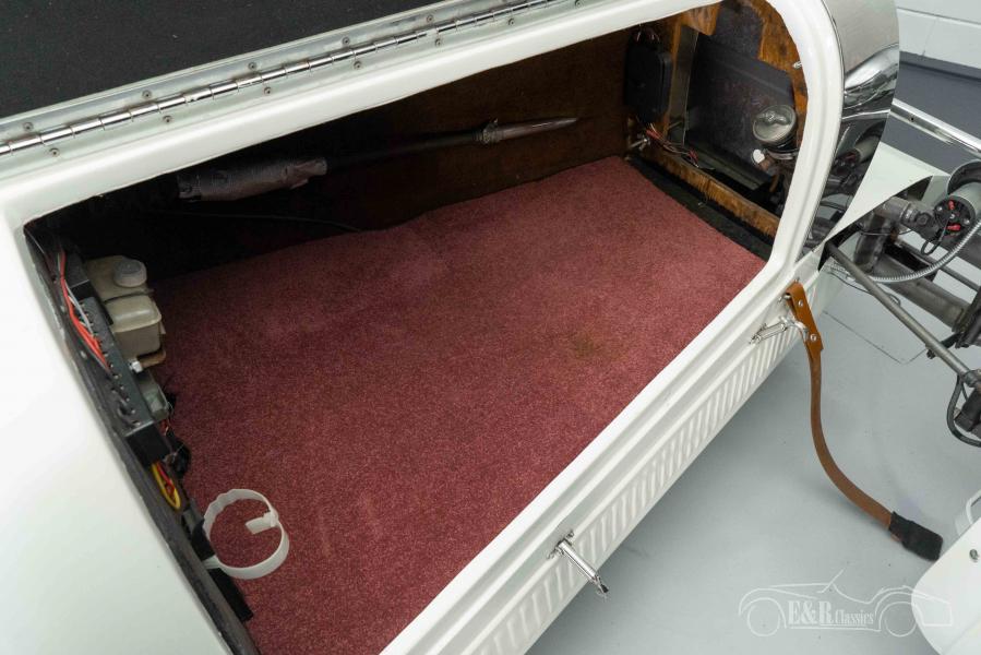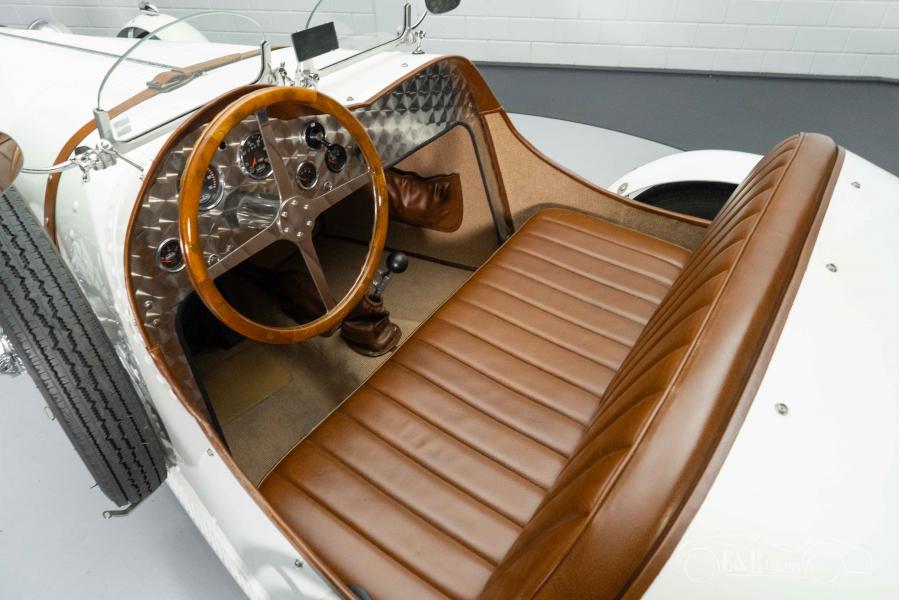 El Bugatti Type 35B que ofrecemos a la venta aquí es realmente llamativo y está garantizado para robar el espectáculo en cada evento y rally en el que participe. Tiene una pintura blanca que combina a la perfección con el cromo y las ruedas de alambre cromado. Para completar el look, el clásico está equipado con una rueda de repuesto, ventanas Brooklands y correas de cuero alrededor del capó. El interior está en muy buen estado y está equipado con un salpicadero Bugatti-Look y tapicería de cuero marrón. ¿Estás buscando un coche clásico único para visitar espectáculos y eventos o para dar una vuelta? Entonces este es el coche para ti.