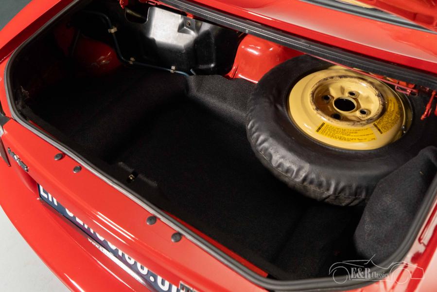 The Mazda MX5 NA that we offer here is really a sight to behold. It has a beautiful red paint that has recently been renewed. The interior is in a neat, original condition and is equipped with fabric upholstery. This MX5 has a light brown soft top and the original hard top. The alloy wheels complete the overall picture.