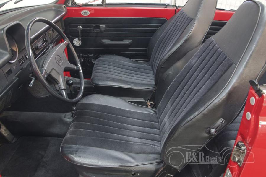 Que este VW Beetle Cabriolet provenga de un entusiasta muestra la tarjeta de mantenimiento original de VW. Todos los servicios se han registrado durante los últimos 25 años. El kilometraje indicado muestra que el kilometraje de 66,646 km está garantizado. Además del buen estado técnico del clásico, el coche está equipado con un juego de llantas Weltmeister y una capota blanda negra. El interior tiene tapizado negro que contrasta muy bien con la pintura roja y el hermoso cromo.