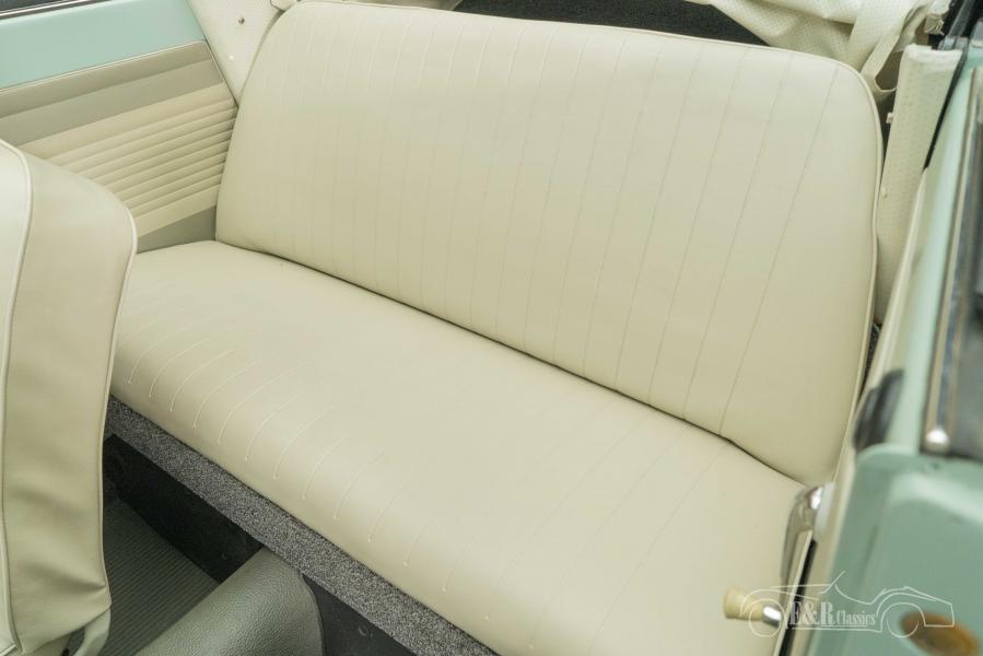 The Volkswagen Beetle Cabriolet that we offer for sale here is truly a sight to behold. It is finished in the beautiful colour Bahama Blue. A colour that perfectly suits this classic and combines very nicely with the chrome and the white walls. The interior is in a very neat condition and is equipped with beige-coloured artificial leather upholstery. The black fabric soft top has been renewed and can be folded in an instant so that you can enjoy the outdoors while driving.