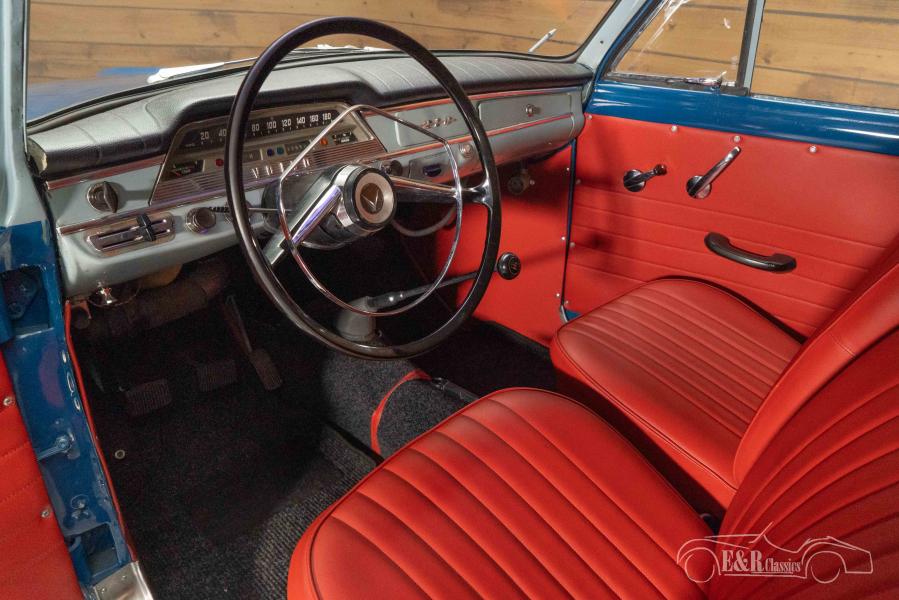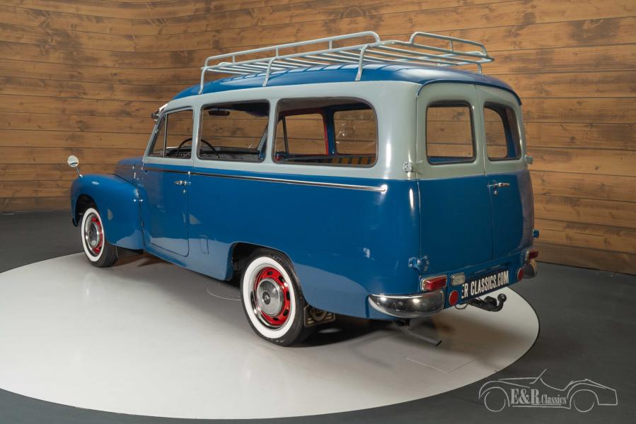 El Volvo Duett que ofrecemos a la venta es realmente digno de admirar. Está acabado en una pintura azul de dos tonos que combina perfectamente con este clásico de los años 60. El Volvo también está equipado con algunos extras agradables como un portaequipajes, parasol, espejos en el parachoques, faros adicionales y paredes blancas. El interior rojo del Duett resalta y combina muy bien con la pintura azul. La plataforma de carga está cubierta y con incrustaciones de madera.
