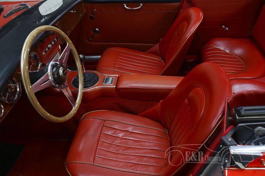This Austin Healey is really a sight to see. The red paint looks great on this classic and combines very nicely with the chrome wire wheels and all accessories. The interior has red leather upholstery with a wooden dashboard and steering wheel. To complete it all, the Healey is equipped with a black soft top so that you can also go out in doubtful weather. In short, a beautiful Matching Numbers Austin Healey that is completely ready for many beautiful tours.