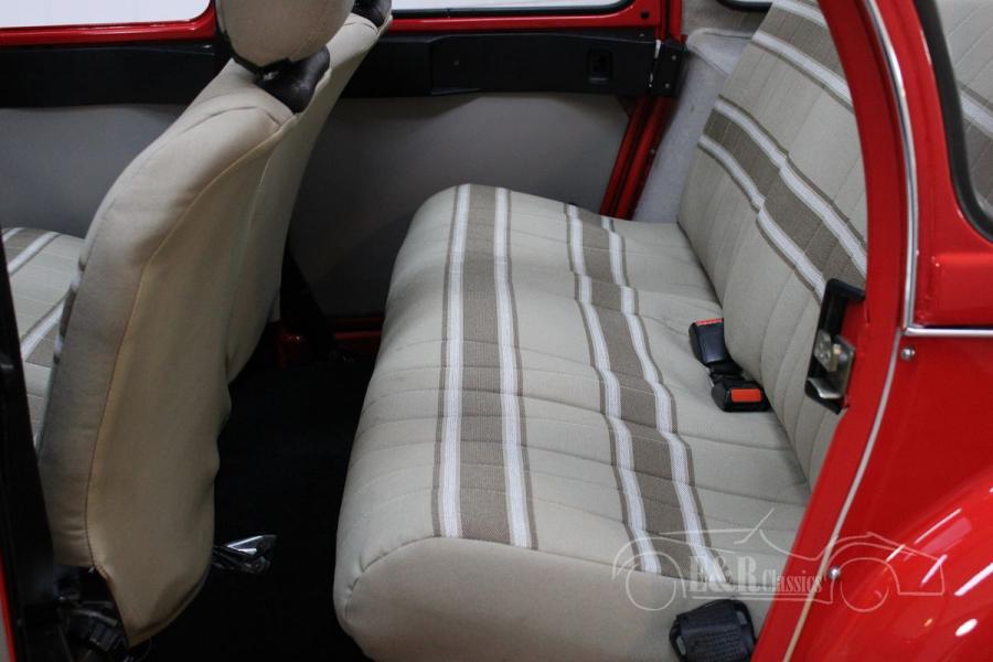 We offer for sale this beautiful, restored 1985 Citroën 2CV6. It is a Club version, the more luxurious version of the Citroën 2CV6 Special, which is distinguished by more luxurious upholstery, a more extensive dashboard and a roll-up roof that can be opened from the inside. Furthermore, this classic Citroën is equipped with the extra option of headrests on the front seats.