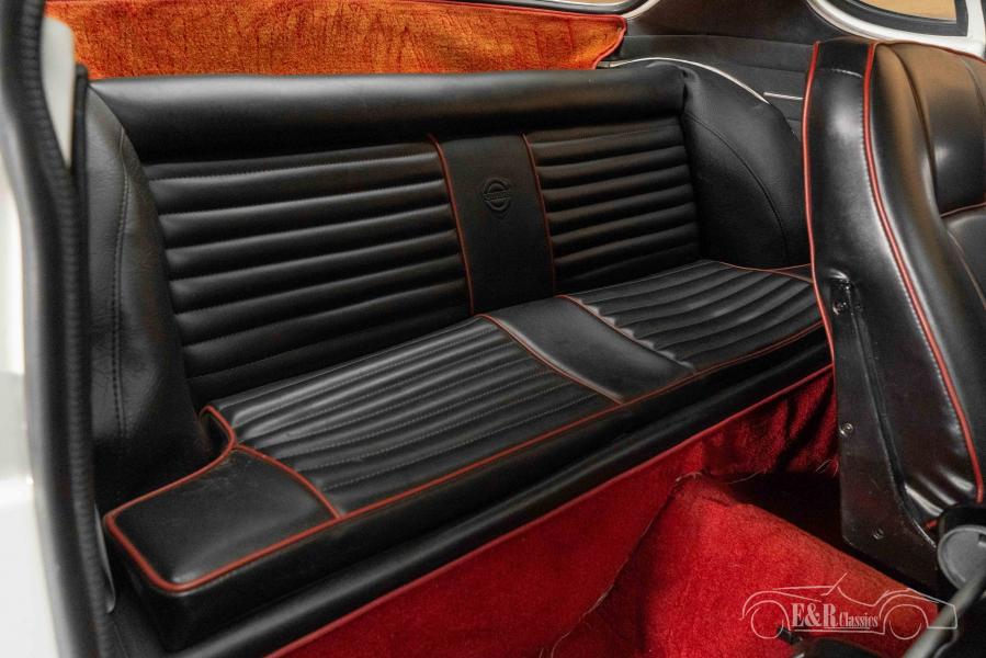 El panorama general de este Volvo P1800 S es completamente correcto. Durante la restauración, se le proporcionó una hermosa pintura blanca que combina muy bien con todos los accesorios cromados. El interior tiene alfombra roja y tapizado negro con ribetes rojos. En combinación con la pintura blanca, llama la atención. En resumen, un Volvo P1800 S totalmente equipado y completamente listo para su nuevo propietario.