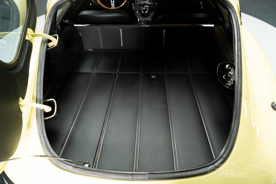 La Jaguar El E-Type Series 2 Coupe que ofrecemos a la venta aquí es realmente un espectáculo para la vista. Tiene un acabado en el color original de fábrica Primrose Yellow, un tono amarillo que se ve impresionante en este British Classic y le da un carácter distintivo. El interior está en buenas condiciones y presenta tapicería de cuero negro y un volante deportivo de madera. La combinación de la pintura exterior Primrose Yellow y el interior negro es exactamente como el E-Type salió de fábrica, ejecutado según las especificaciones originales.