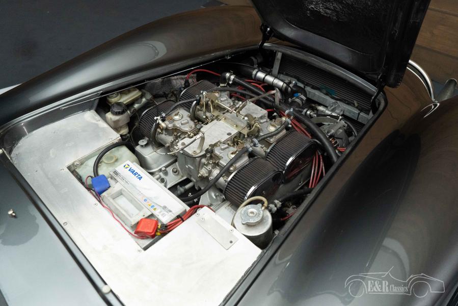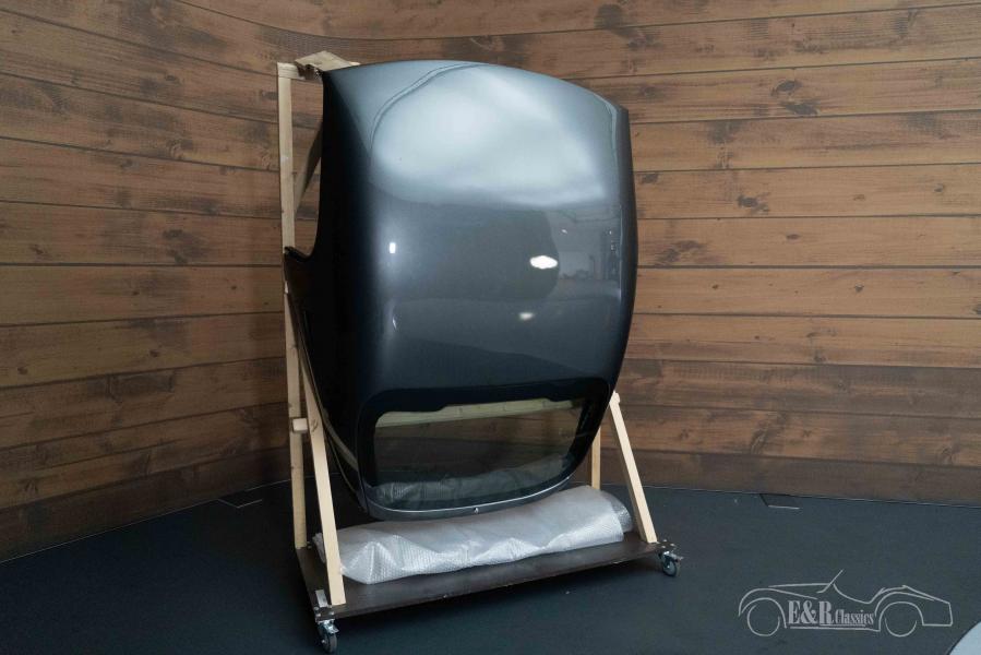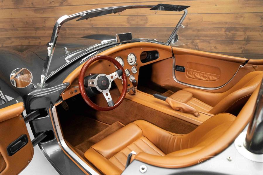 The Pilgrim Sumo that we offer for sale here is really great to see. It has a beautiful anthracite-coloured metallic paint that combines very nicely with the chrome and the dark rims. The tan-coloured interior contrasts nicely with the paint and is in a very neat condition. The special thing about this Pilgrim Sumo is that in addition to a fabric soft top, it also has a Le Mans style hard top in the same colour as the body.