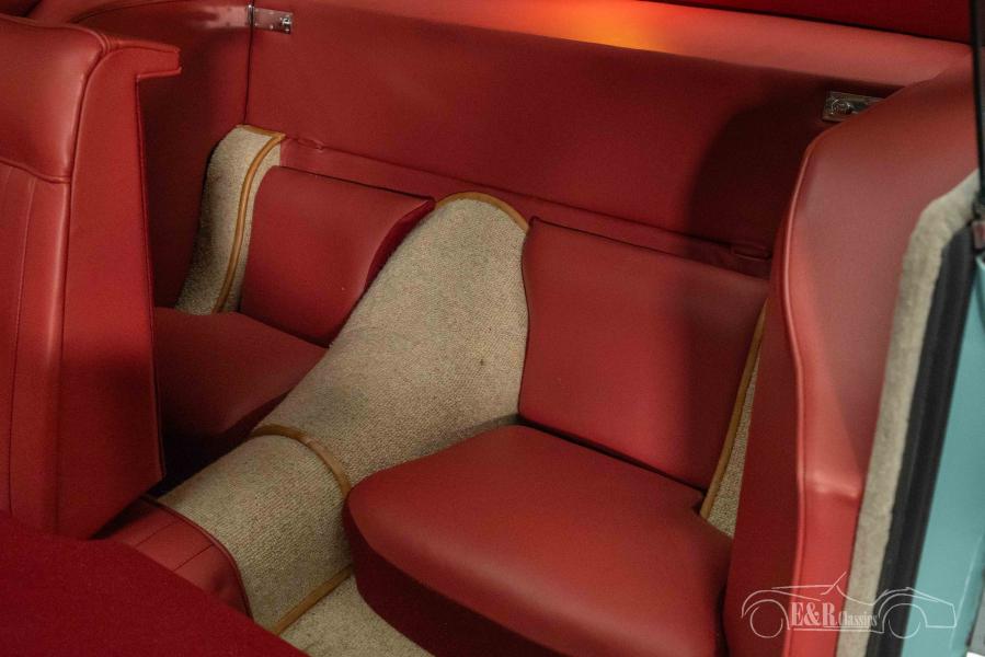 La Jaguar El XK150 FHC que ofrecemos aquí es un auténtico espectáculo. Está acabado en el precioso color Ocean Blue, que le da a este clásico británico un carácter distintivo. La combinación con el cromo y las llantas de radios con revestimiento en polvo negro lo convierten en un auténtico punto de atracción. Lo realmente especial de este XK150 es el techo corredizo Webasto, que se entrega de fábrica. El interior está equipado con moqueta beige y tapicería de cuero rojo burdeos.