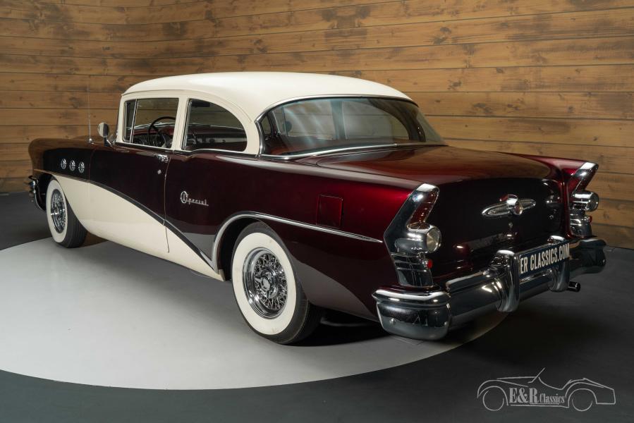 We offer for sale this beautiful Buick Special 2-door Sedan from 1955. The Buick comes from an enthusiast and regular customer of E&R Classics who exchanged the classic for another one. The Buick Special was extensively restored a few years ago and is in top condition. The restoration has been recorded in an extensive report consisting of photos and videos. It is powered by a 264 CUI Fireball V8 engine with automatic gearbox. The Buick is also equipped with power steering that provides a wonderful driving experience.