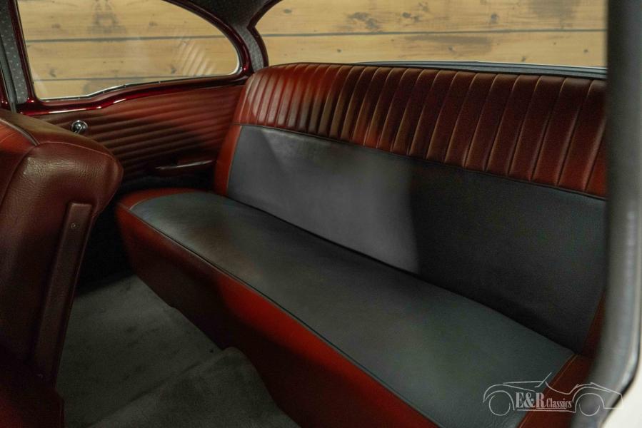 El Buick Special Sedán de 2 puertas que ofrecemos a la venta aquí es verdaderamente digno de contemplar. La restauración es de un estándar muy alto y se nota. Tiene una hermosa pintura de dos tonos en el esquema de color especial Dark Cherry/White. Un color que luce genial en este clásico y hace que el cromo resalte. El Buick también está equipado con llantas de alambre Kelsey Hayes con paredes blancas que combinan completamente con el aspecto de este clásico de los años 50. El interior está en muy buenas condiciones y tiene tapicería roja y negra y un hermoso tablero de instrumentos original. ¿Ya te imaginas recorriendo este clásico estadounidense?