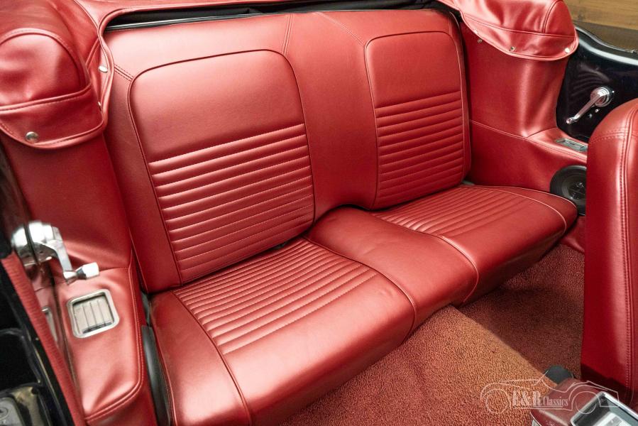Como puede ver en las fotos, este Ford Mustang Cabriolet de 1967 es realmente un espectáculo para la vista. Tiene una hermosa pintura metalizada azul oscuro, que es casi negra. Un color muy singular que lo hace realmente llamativo y combina muy bien con las llantas cromadas y American Racing. El interior del Mustang es tan especial como su pintura. La tapicería está provista de polipiel rojo oscuro que contrasta muy bien con la pintura oscura y la completa. ¿Estás buscando un Ford Mustang Cabriolet único? ¡Entonces este es el clásico para ti!