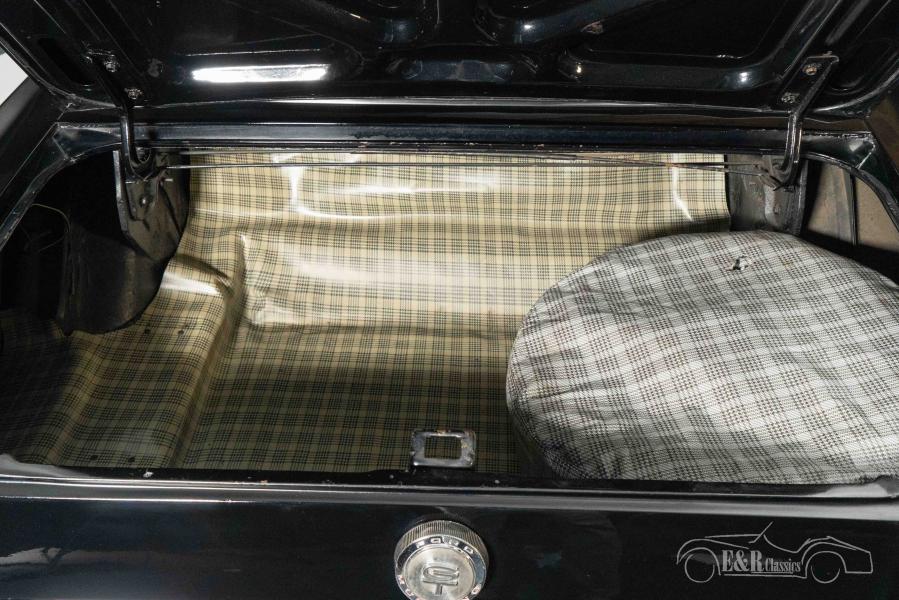 This Mustang has been extensively restored and is in very good condition, finished in the exclusive Triple Black colour scheme: black paint, black interior and a black (hydraulically operated) soft top. The stylish Pony interior is complemented by a dashboard with wood inlay, a centre console and the popular Rally Pack counters. The GT look is enhanced by subtle details such as the red accents and various badges, the fog lamps in the grille and the exhaust through the rear bumper. This Mustang offers both luxury and sportiness in a timeless design.