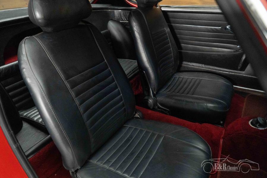 The exterior of this Volvo P1800 is finished in its original colour Red, which fits perfectly with the classic lines and chrome accents of the car. The characteristic grille and elegant bumpers emphasize the sporty yet elegant appearance. The red steel rims with chrome hubcaps complete the whole. The interior exudes pure classic atmosphere with the black leather interior, a beautiful Jensen rear seat and the original dashboard with aluminum finish and classic meters. The combination of the deep red paintwork and the chic black interior gives this Volvo a timeless look that makes it an absolute rarity in the world of classic cars.