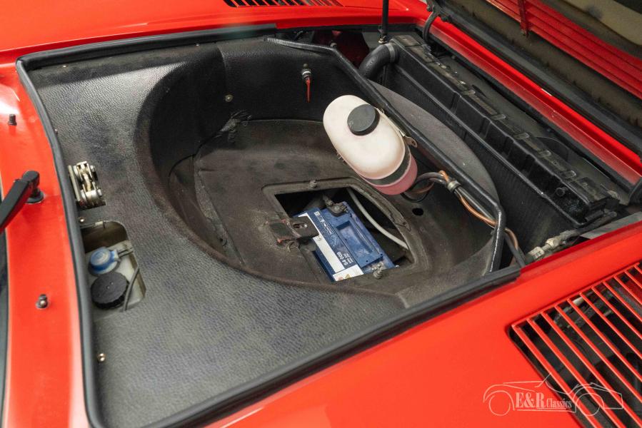 El exterior irradia una elegancia atemporal gracias a la icónica pintura Rosso Corsa, parcialmente restaurada en 2006 y registrada en el ASI. Las líneas definidas y los sutiles elementos de diseño, como las características tomas de aire y las llantas originales, realzan su aspecto deportivo. El interior es igualmente impresionante, con tapicería de cuero negro que contrasta a la perfección con la carrocería roja. Los clásicos relojes analógicos y el auténtico volante Ferrari te transportan directamente a la gloria de los años 80. Este no es un deportivo cualquiera, sino una pieza de la historia de Ferrari: un icono coleccionable único con un carácter único.