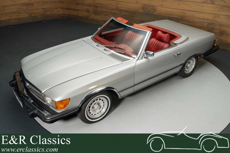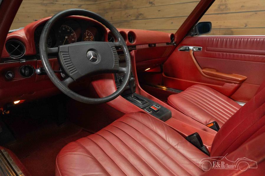 The exterior of this Mercedes exudes pure class with its silver-grey paintwork that contrasts beautifully with the deep red interior. The classic baroque wheels give the car an authentic look that matches the stylish character of the R107 series. The interior, with its red leather upholstery, exudes luxury and timeless elegance. The dashboard and door panels in matching shades ensure a harmonious whole. Whether the hood is up or down, this 450 SL is guaranteed to attract admiring glances and offers a driving experience that combines the best of Mercedes-Benz: craftsmanship, performance and timeless beauty.