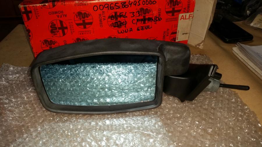 Se vende espejo retrovisor izquierdo con cristal azul para Alfa Romeo 33. Modelos asta el 90. Original Alfa Romeo ref. 96586495. Es nuevo a estrenar en perfecto estado