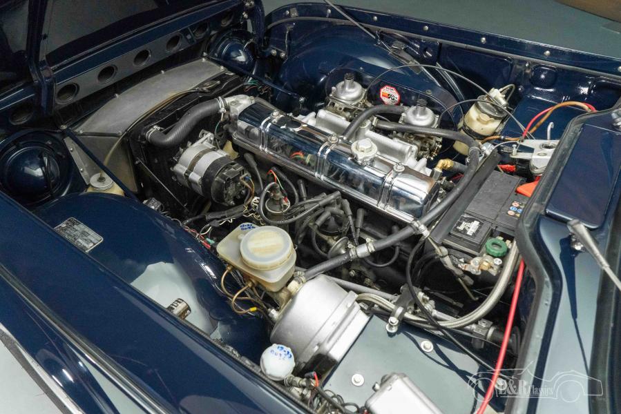 What makes this Triumph TR250 extra special is its stylish Triple Blue version: a deep dark blue paintwork combined with a dark blue soft top and a matching dark blue interior. The sporty Minilite rims and extra spotlights at the front emphasise its classic rally look. Inside, the wooden dashboard, the wooden sports steering wheel and the wooden gear knob create a warm and luxurious atmosphere that perfectly matches the exterior. A stylish and extremely rare classic for the true enthusiast.