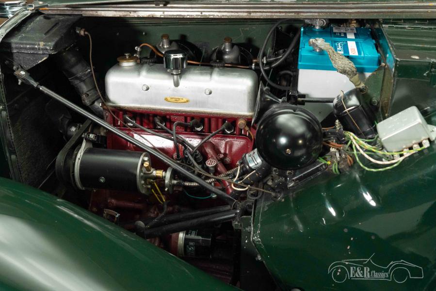 Este impresionante MG TD Mark II de 1953 rezuma clase y deportividad británicas. Como modelo Mark II, es una versión más exclusiva y potente del TD estándar, equipado con un motor de 4 cilindros y 1250 cc acoplado a una transmisión manual de 4 velocidades. El MG TD representó un avance tecnológico en su época gracias a su suspensión delantera independiente, que proporcionaba una mejor maniobrabilidad que muchos modelos contemporáneos. Este MG ha sido restaurado a fondo y se encuentra en excelentes condiciones, con atención tanto a la originalidad como al detalle.