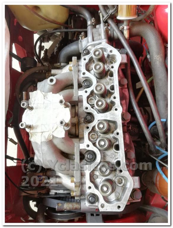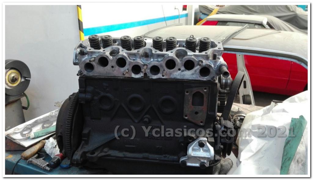 Se desmontó el motor, se sacó del coche, se levantó la culata, se le rectificaron los asientos de válvulas con el fin de modificarlos para gasolina sin plomo, se montaron guías de válvula nuevas, se limpió y planificó la culata. Se montó con kit de distribución nuevo.