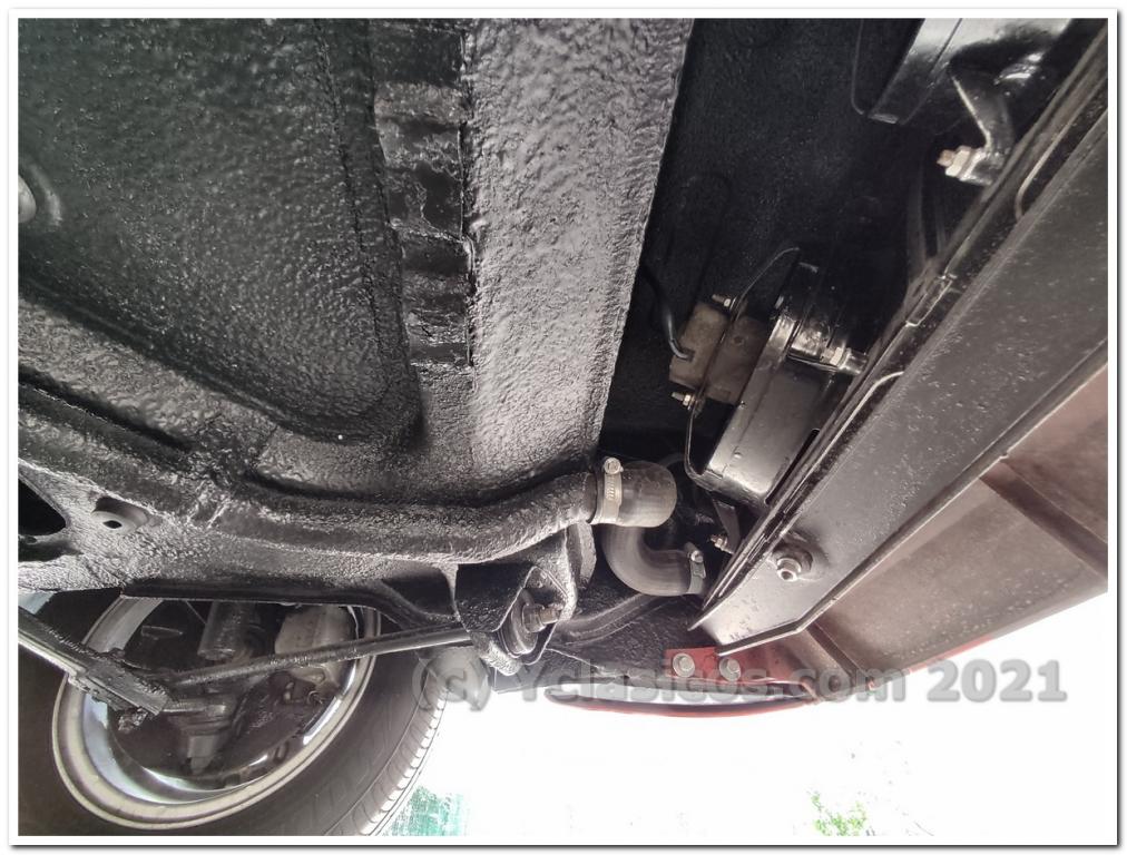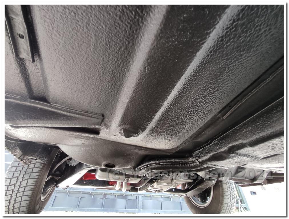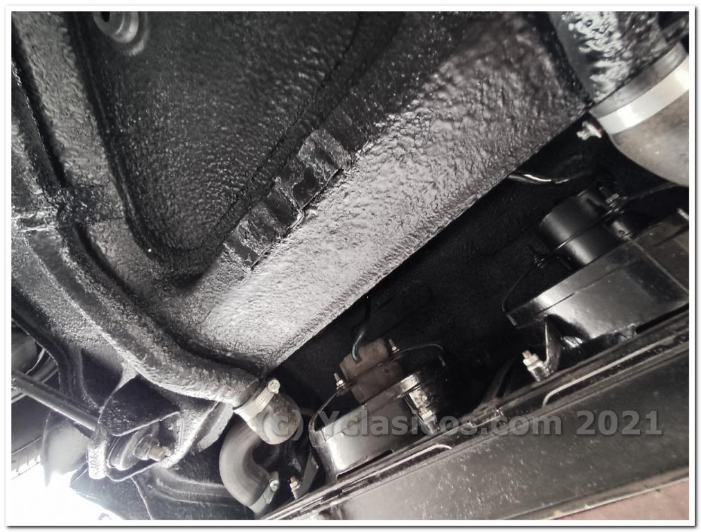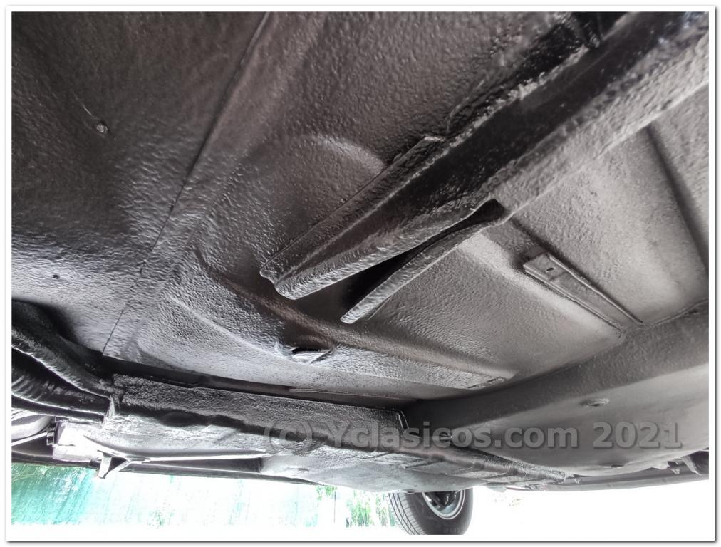 El tubo de escape se limpió y pintó, pero es el original. En esta pieza se palpan muy bien los 45.000km reales que tiene este coche de 41 añitos.