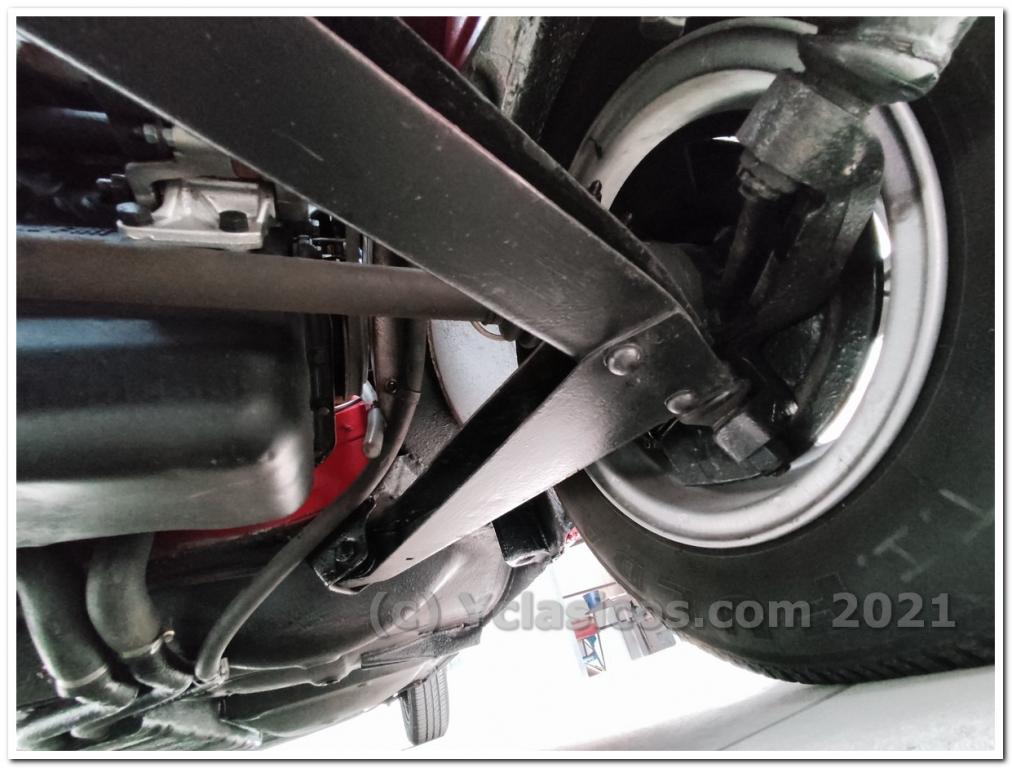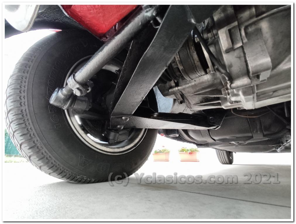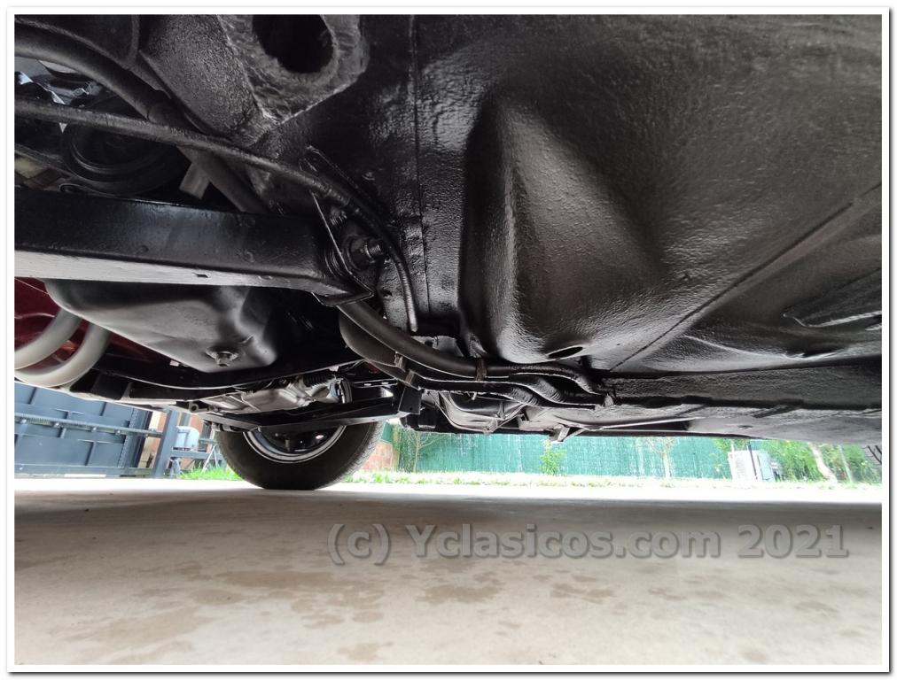 Se le hicieron los frenos completamente nuevos, se desmontaron las pinzas, se chorrearon, pulieron y se montaron gomas y pistones nuevos. Se hicieron latiguillos metálicos tipo Galfer a medida, se cambiaron las tuberías que fueron necesarias, se montó una bomba nueva, discos y pastillas nuevas en las 4 ruedas.