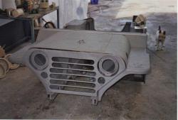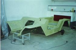 El vehículo fue desmontado totalmente y chorreado con arena con lo que se consiguieron dos cosa, por un lado eliminar pinturas, masillas y óxidos y por otro una estupenda preparación para la posterior aplicación de la imprimación epoxy.