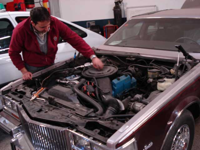 Joan Valldeperez, mi amigo mecánico que ha llevado la tarea de desmontar el motor del cadillac.