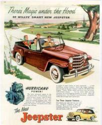 1948 - Nace el  Willys Jeepster. Solamente se producen 19.000 vehículos entre 1948 a 1950.  Otro intento de ofrecer un nuevo producto de Jeep fue el Jeepster en 1948, un automóvil de apariencia deportiva y convertible que se mantuvo en producción hasta 1951 con el motor Hurricane, y cuyo nombre fue retomado en 1967 con la aparición del Jeepster Commando, disponible en versión cabinada (Station-Wagon) ó Convertible, que se mantuvo en producción hasta 1973.