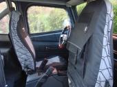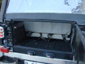 La Carrocería esta ensanchada y reforzada en Dura-Aluminio. Dispone de protecciones cromadas en faros y pilotos. Defensa y Parrilla frontal cromadas. Protecciones laterales bajo puertas. Kit de focos techo larga distancia HUTOPAL. Espejos cromados y todo tipo de embellecedores y accesorios cromados. Tiene Servodirección. Doble capota de invierno descapotable fácilmente y bikini de verano. Radio CD Sony. Volante Jeep OEA. Fundas tapicería con multi bolsillos Baja Explorer. Etc, Etc.