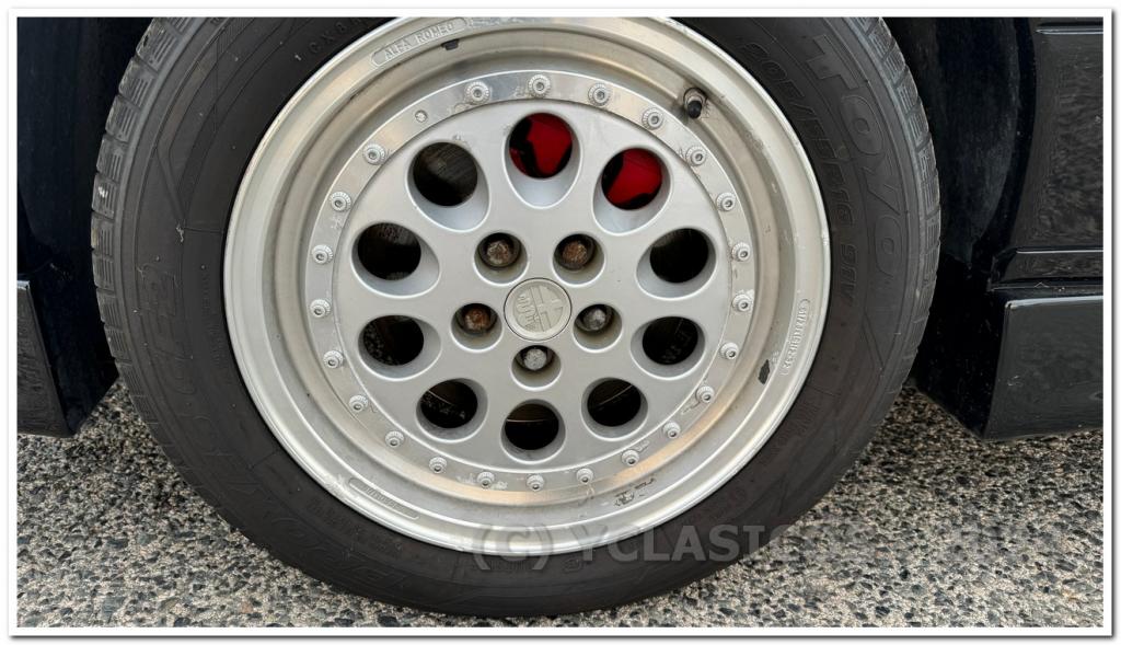 Las llantas originales se encuentran en buen estado general y reflejan el cuidado que se ha tenido en preservar los detalles auténticos del vehículo. Alguna llanta muestra ligeros signos del paso del tiempo, típicos en el aluminio, que podrían beneficiarse de un pulido, sin afectar su integridad ni funcionalidad.